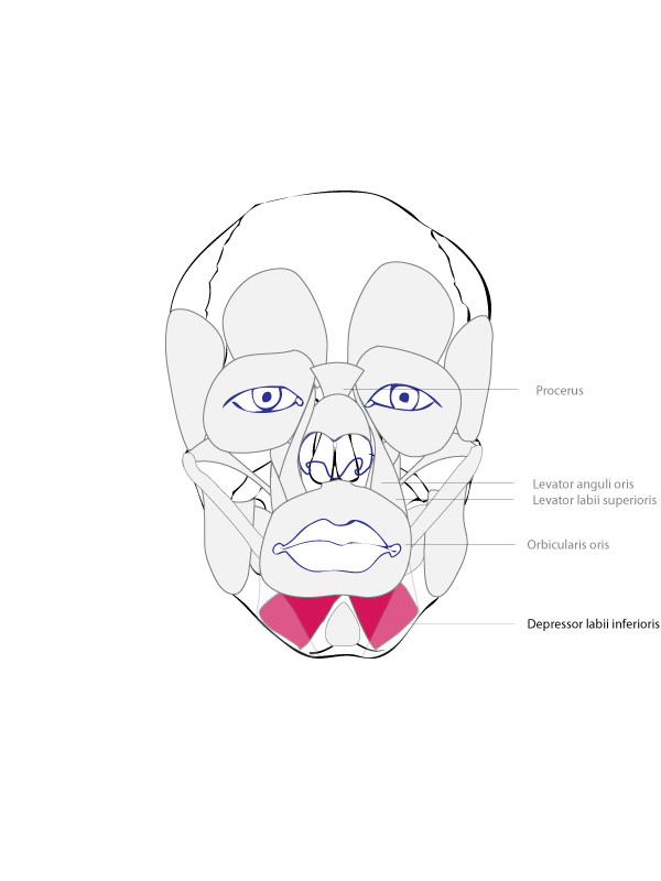 | Verlauf | Zieht vom Unterkiefer in der Mitte nach oben zur Unterlippe. |